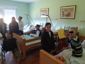 Povodom Dana jabuka, učenici 4.a razreda sa svojom učiteljicom Katarinom Duspara, već tradicionalno, odlučili su odraditi jedan mali humanitarni „zadatak“ i donirati jabuke Domu za starije i nemoćne, Hodak u Mirkovcima. To su obavili 29. listopada. Iz škole su krenuli pješice, svatko sa svojom vrećicom jabuka i pismom kojega su od srca napisali korisnicima. Dočekale su nas ljubazne djelatnice i vlasnica koje su učenike provele kroz prostorije u kojima borave korisnici. Bilo je emotivnih trenutaka, poneka suza i osmijeh uz mnoge dobre želje. Na povratku, učenici su sa svojom učiteljicom razgovarali o posjetu te zaključili kako su stari i nemoćni potrebni naše pomoći, ljubavi i pažnje. Mnogi su obećali i kako će se, kada njihovi roditelji budu stari, o njima brinuti.
