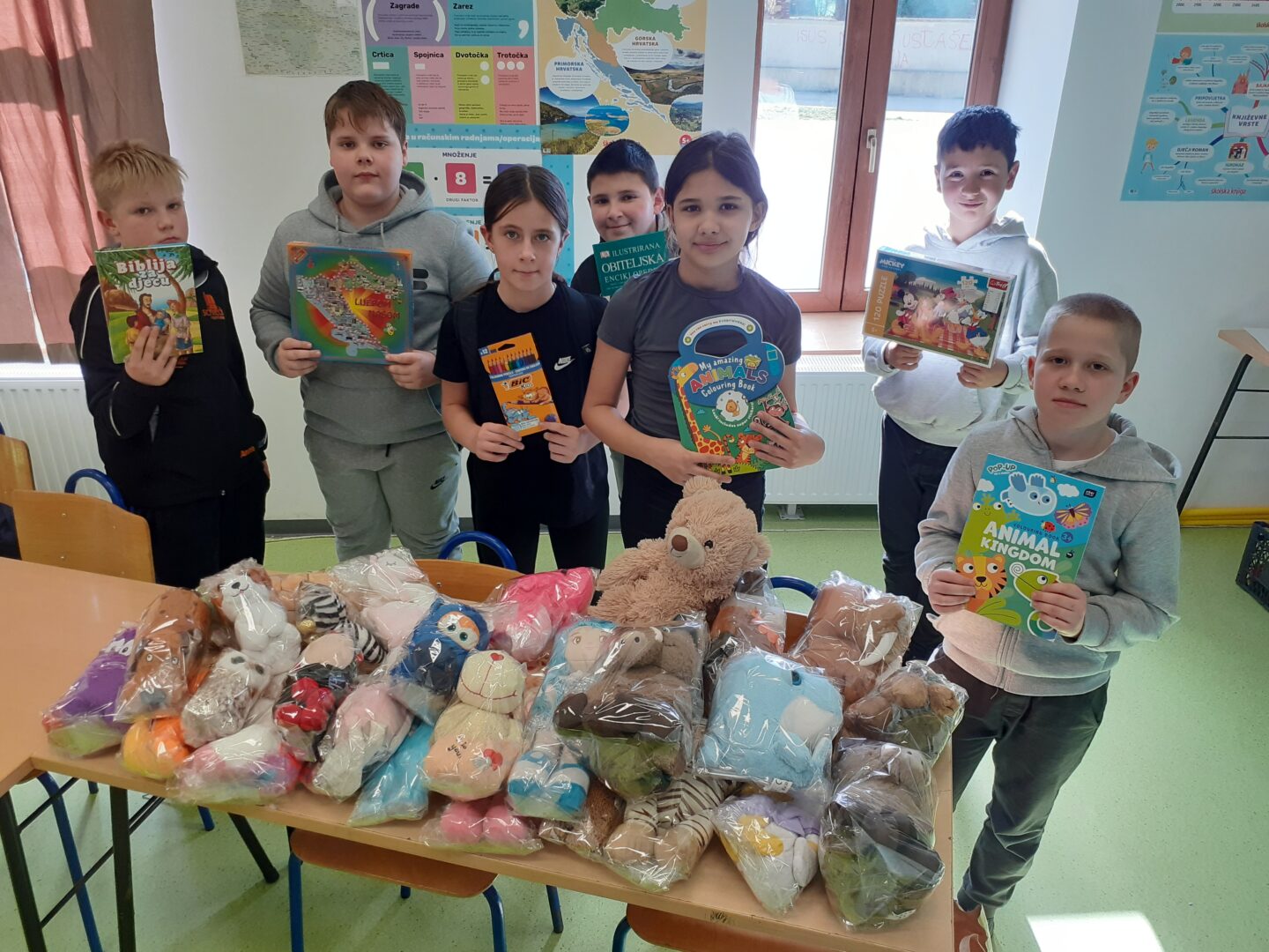 U sklopu izvannastavne aktivnosti „Moje zdravlje, moje pravo“ koju vodi učiteljica 4.a razreda, Katarina Duspara, organizirali smo, povodom Svjetskog dana bolesnika, donaciju plišanaca, knjiga i bojanki Odjelu pedijatrije OŽB Vinkovci. Učenici i učiteljica donijeli su oprane, čiste i potpuno ispravne igračke s kojima žele razveseliti svog bolesnog prijatelja ili prijateljicu u bolnici. Našoj se akciji pridružila i školska pedagoginja Vesna, koja je sačuvala plišance iz ranije školske akcije „Plišanci za osmijehe“ te ih pažljivo i s puno ljubavi pojedinačno umotala. Kako je toga bilo dosta, dio prikupljenoga odlučili smo donirati i Dječjem domu sv. Ane, Vinkovci. Ovom akcijom želimo samo još jednom pokazati kako se uvijek može učiniti neko dobro djelo samo ako imamo poticaj i volju. Mi ćemo i dalje nastojati djelovati, a svatko od Vas nam se može i priključiti. Naše „malo“ nekome će ovoga puta uljepšati boravak u bolnici i zbog toga smo silno sretni!