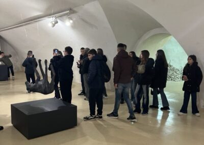 Nakon projekcije učenici su posjetili Galeriju, gdje su razgledali izložene radove i upoznali se s osnovama likovnih tehnika i autorima. Učenici su pokazali znatiželju i aktivno sudjelovali u razgovoru o viđenom.
