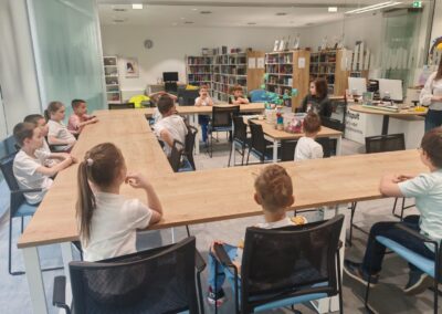 Danas su učenici 1.a i 1.b razreda posjetili Gradsku knjižnicu i čitaonicu Vinkovci, gdje su na drugačiji i kreativan način obradili lektirno djelo Plesna haljina žutog maslačka.