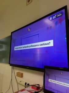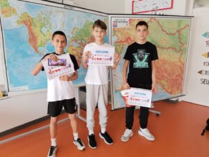 Povodom manifestacije Noć geografije 2026. u našoj je školi 8. travnja 2026. godine održano natjecanje u poznavanju državnih zastava. Trebalo je prepoznati zastave Njemačke, Finske, Latvije, Cipra, Kanade, Kine…, ali i država poput Kambodže, Palaua i Svetog Kristofora i Nevisa. Učenici su se natjecali u dvije kategorije. Pokazali su zavidno znanje, a presudna je bila brzina. Prva je kategorija bila za učenike 4., 5. i 6. razreda. U toj su kategoriji prva tri mjesta osvojili Luka Letinić (5. a), Duje Pavić (5. a) i Emanuel Očevčić (6. a). Posebno pohvaljujemo hrabre učenike četvrtih razreda koji su sudjelovali u ovom natjecanju. Druga je kategorija namijenjena učenicima 7. i 8. razreda, a tu su se posebno iskazali: Stefan Zorić (7. b), Talia Matijević (7. b) i Ana Samardžić (8. b). Kviz natjecanje organizirao je i proveo učitelj geografije Dragan Jović.