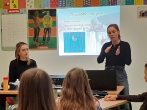 U sklopu izvannastavne aktivnosti „Moje zdravlje, moje pravo“ koju vodi učiteljica Katarina Duspara odradili smo, već ustaljenu, suradnju s Patronažnom službom Doma zdravlja Vinkovci na temu „Šećerna bolest ( 14.11. Svjetski dan šećerne bolesti )“. Kroz prezentaciju naših dragih gošći, učenici 4. a razreda saznali su mnoge važne informacije o toj „tihoj, podmukloj“ bolesti koja može imati ozbiljne posljedice, ako se ne prepozna, zanemari ili ne liječi. Po završetku predavanja, gošće su izmjerile razinu šećera u krvi učiteljici, ravnatelju i onim učenicima koji su za to dobili suglasnost roditelja. Mislim da je ovo predavanje, kao i sama pretraga, hvale vrijedna te ju iz godine u godinu provodim u svom razredu zahvaljujući našim dragim gošćama. Kontrolni pregledi i rano otkrivanje bilo koje bolesti ključni su za daljnji tijek liječenja te očuvanja zdravlja.