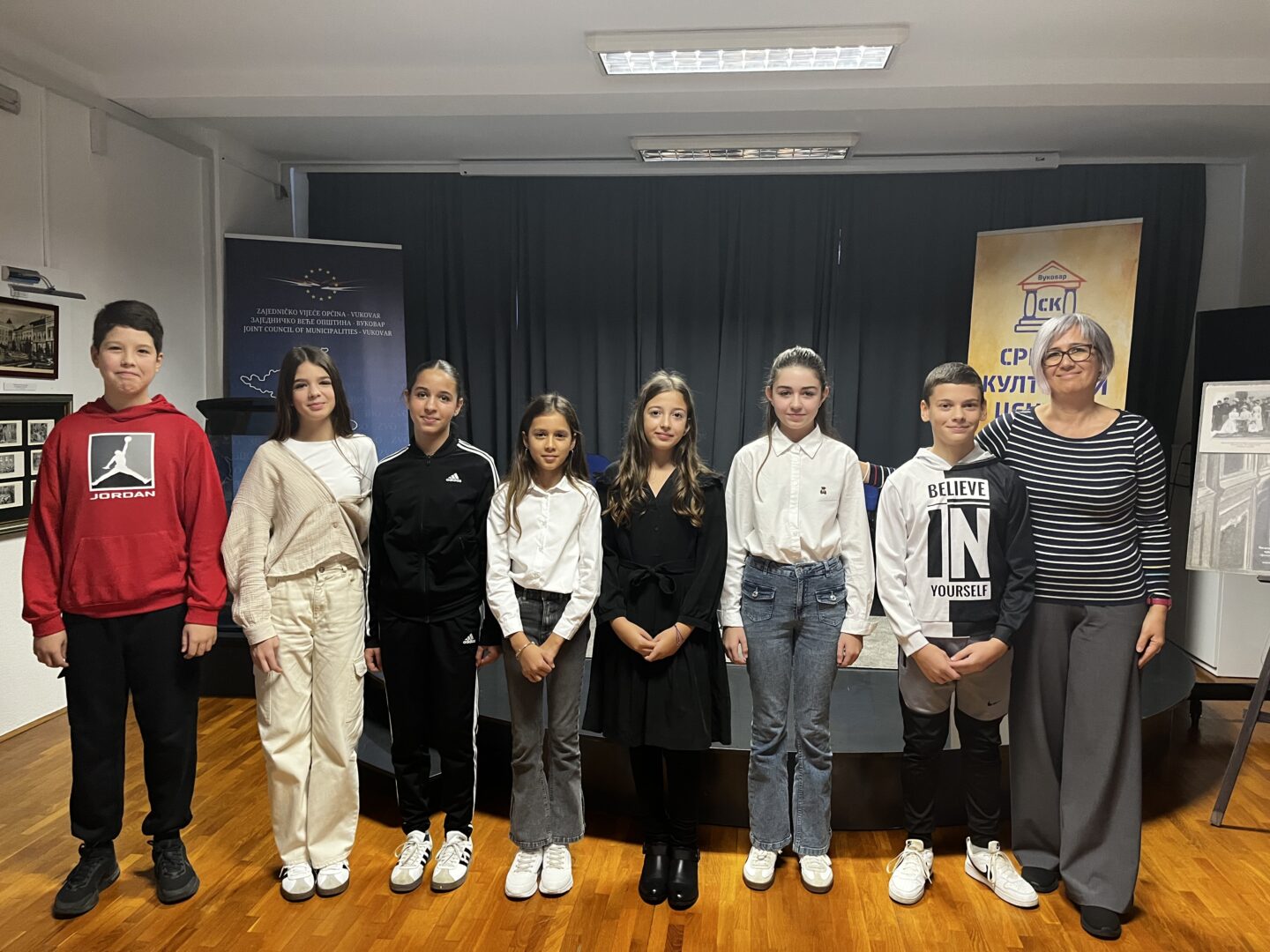 Naši učenici sudjelovali su 24. i 25. listopada 2025. godine na literarnom i dramskom natječaju „Pišemo i glumimo“ u okviru projekata Zajedničkog vijeća općina Vukovar. Projekt financira Ministarstvo znanosti, obrazovanja i mladih Republike Hrvatske u sklopu financiranja projekata nacionalnih manjina. Naša je škola imala čast biti dijelom ovog događaja zajedno s ostalim školama u kojima se odvija nastava po Modelu A. Prvog takmičarskog dana, na Smotri literarnog stvaralaštva našu školu su predstavljale učenice 6.b razreda Nevena Grubić i Anja Ličina. Učenice su sudjelovale u radionici kreativnog pisanja literarnim radovima „Majka je najljepša bajka“ i „Sve ljepote svijeta“ bez plasmana. Sljedećeg dana, na Smotri dramskog stvaralaštva, učenici 6.b i 7.b Nikolina Grubić, Anja Ličina, Anđela Karupović, Nevena Grubić, Jakov Subašić, Aleksandar Kuzmanović i Talija Matijević izveli su jednočinku „A može i drugačije“ i osvojili drugo mjesto u starijem uzrastu. Izvedba naših učenika, ali i tekst, koji je nosio suvremenu tematiku i poruku, dopao se i žiriju i publici. Nagrada učenicima je organizirani izlet u Novi Sad. Mentorica svim učenicima je bila učiteljica srpskog jezika Branka Brdarić. Učenici su sa manifestacije otišli puni lijepih dojmova i bogatiji za nova prijateljstva. Zahvaljujemo organizatorima na pozivu, organizaciji i donaciji knjiga našoj školskoj knjižnici.